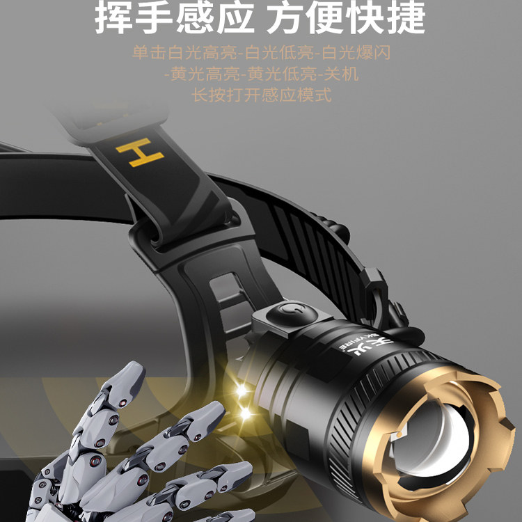 头灯强光充电式超亮小型头戴式长续航感应夜钓鱼专用户外夜爬登山