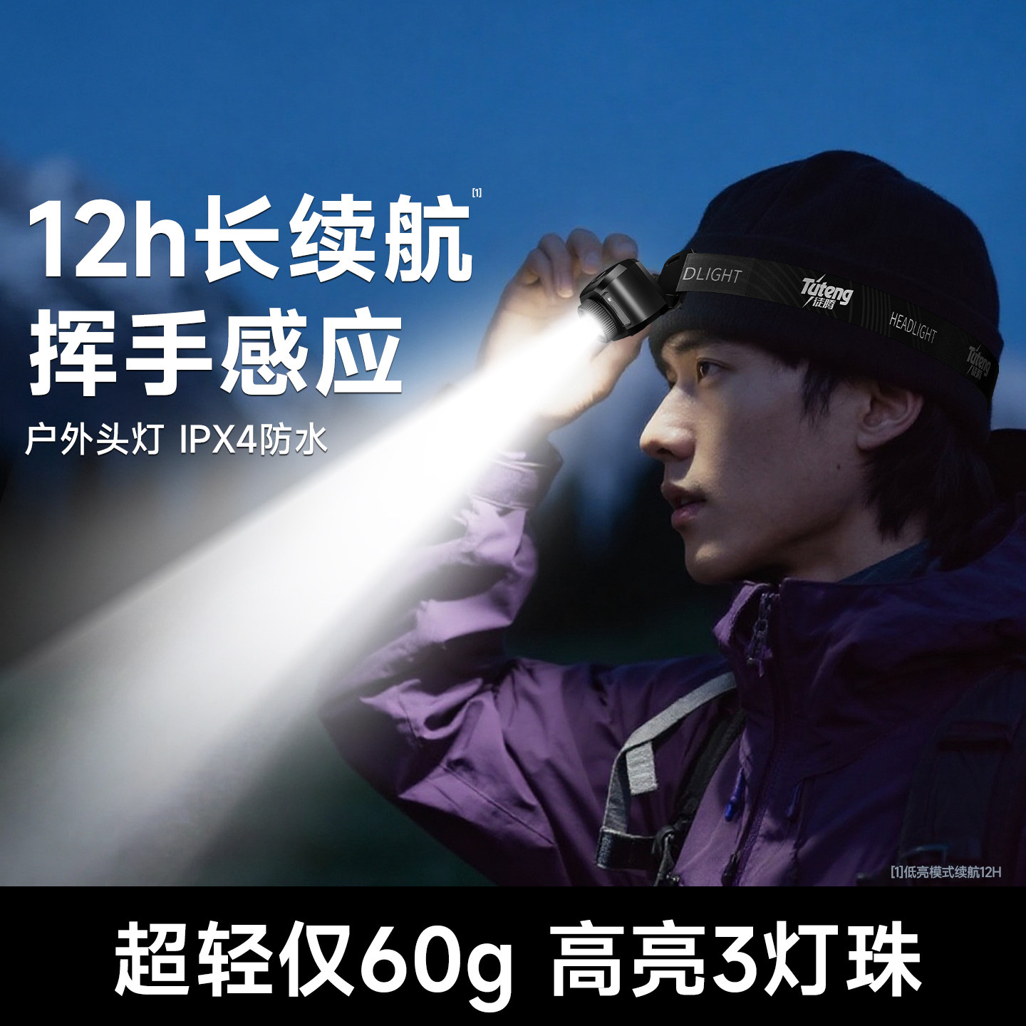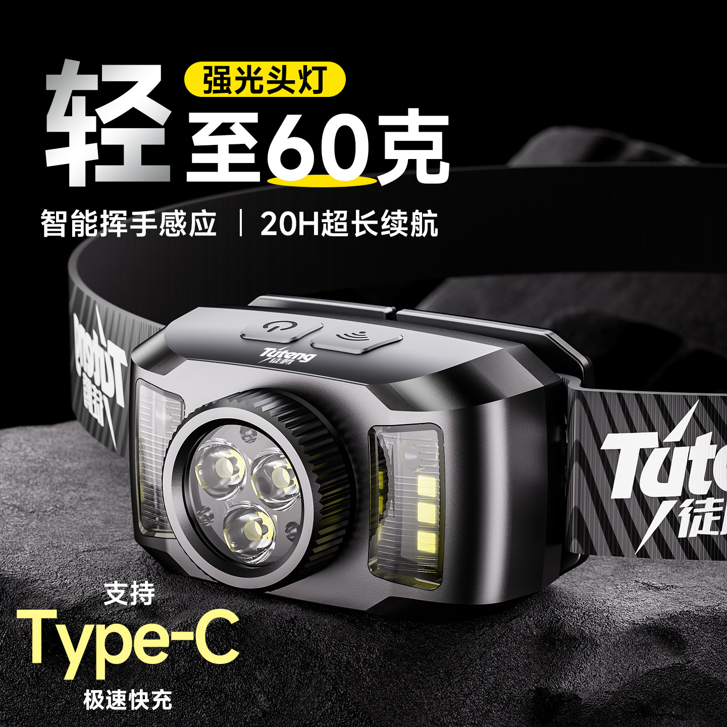 淘超轻头灯强光充电超亮头戴户外感应登山夜跑钓鱼红光驱蚊超长续航