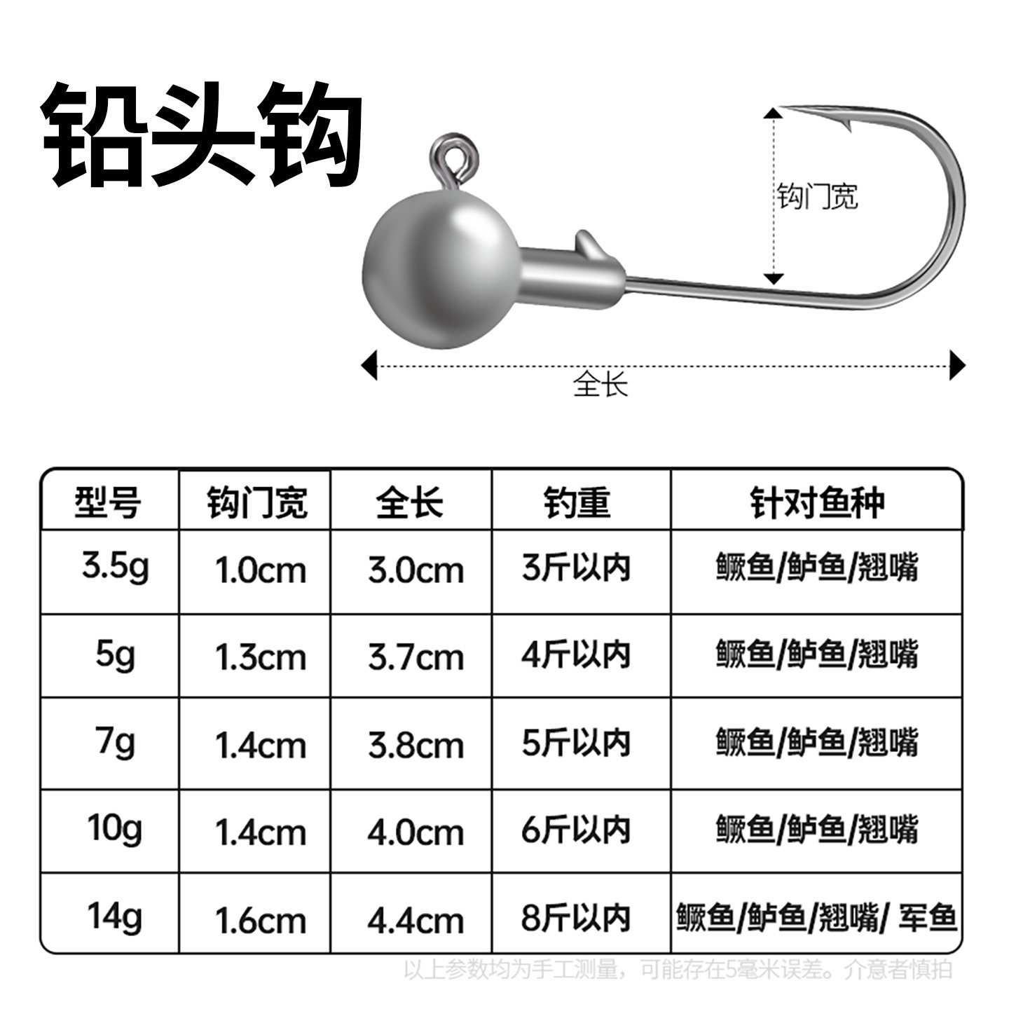 天猫纯铅铅头钩钓鱼钩防挂底不变形鱼钩微物路亚远抛钓鳜鱼鲈鱼翘嘴