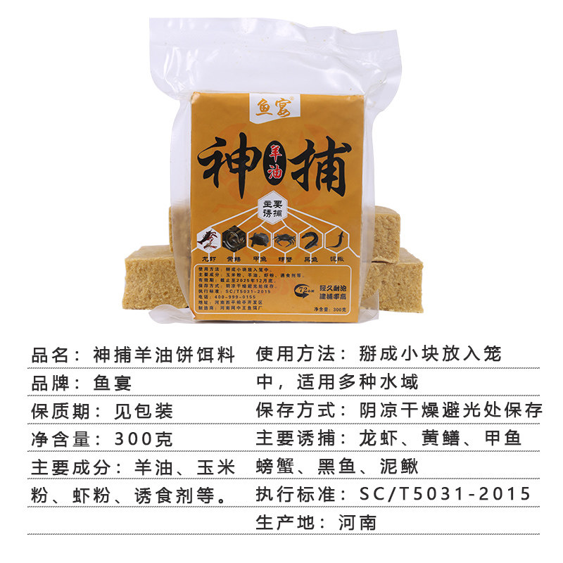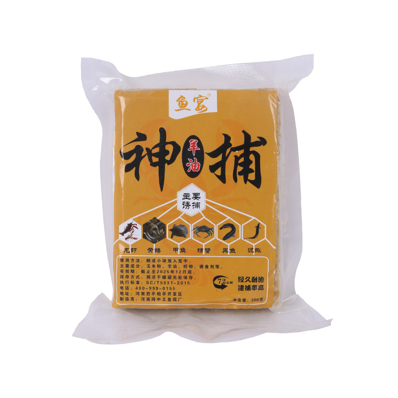 羊油饼饵料小饼子是一款专为捕捉龙虾、河虾、泥鳅、黄鳝及各类杂鱼设计的天然高效诱饵。采用优质羊油为主料,融合多种诱食成分,经科学配比压制成型,气味浓郁持久,能有效吸引水底杂食性鱼类和甲壳类生物。小饼状设计便于投放,适用于地笼、网箱、鱼笼等捕捞工具,入水后缓慢释放香味,持续诱鱼聚窝。其成分安全环保,不伤水质,适合江河、湖泊、池塘等多种水域使用。无论是业余垂钓还是专业捕捞,本品均能显著提升捕获效率,是捕捉底栖水产的理想选择。