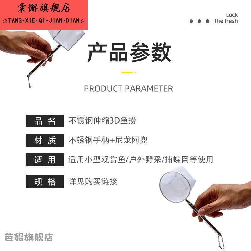 淘抄鱼网通用3D鱼捞可伸缩不锈钢抄网细眼轻巧绵柔精准不伤鱼捞鱼网