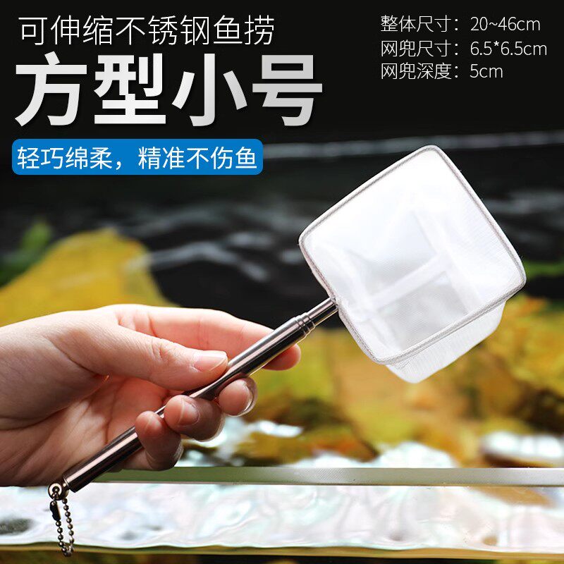 鱼缸渔捞网兜方形鱼捞手抄网观赏鱼水族箱不锈钢伸缩鱼网
