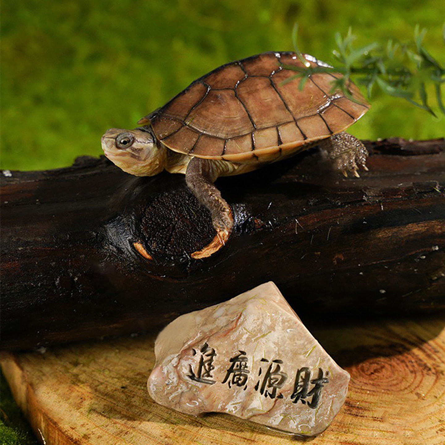 作为宠物龟,南石龟性格温顺,互动性强,可适应浅水缸或生态池环境,饲养简单(以龟粮、小鱼虾为主)。其活跃的季节性活动(春夏季)和冬眠特性,为饲主增添自然观察乐趣。无论是风水镇宅、收藏赏玩,还是陪伴饲养,纯种石金钱龟都是兼具文化底蕴与趣味性的理想选择。