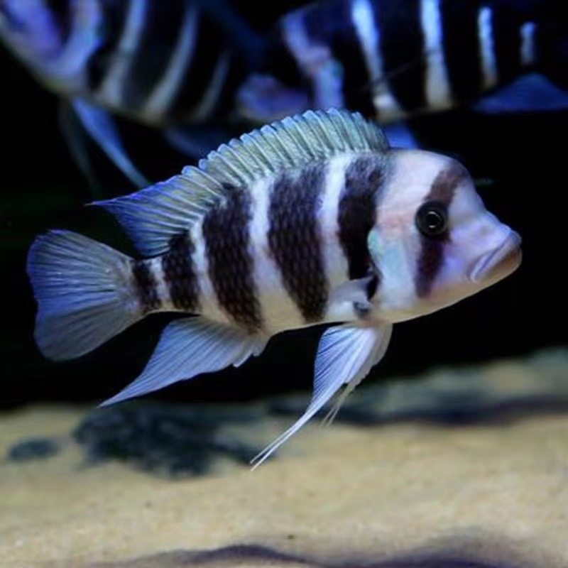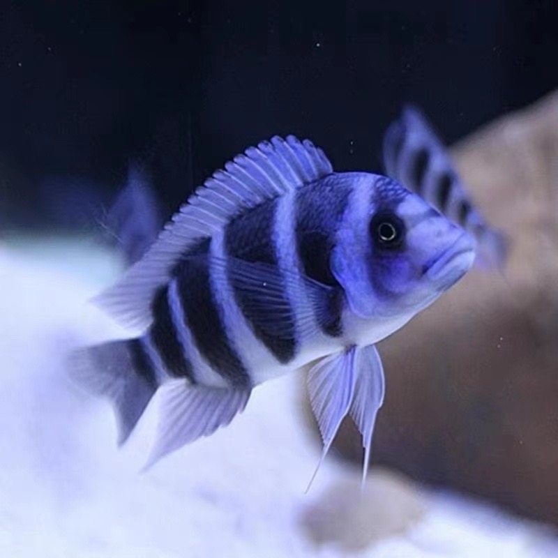 伊巴卡布隆迪六间、鹅头六间与萨伊蓝是进口自非洲坦噶尼喀湖的珍稀三湖慈鲷,以其绚丽的体色与独特习性深受观赏鱼爱好者青睐。伊巴卡布隆迪六间体侧具六条鲜明黑带,蓝白相间,游姿优雅;鹅头六间头部隆起如鹅,个性温和,群游效果极佳;萨伊蓝则通体湛蓝带金属光泽,极具视觉冲击力。三者均属坦鲷,适宜弱碱性硬水环境,需宽敞水族箱与充足躲藏空间。作为活体热带观赏鱼,它们不仅展现自然之美,更考验饲养者的水质管理与混养技巧,是高端三湖慈鲷缸中的明星品种。