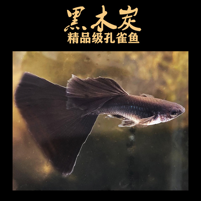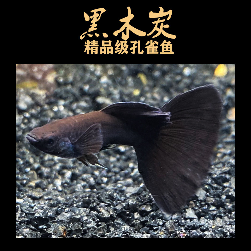 淘宝黑木炭孔雀鱼黑礼服精品大尾临产怀孕母鱼缎带热带观赏水草缸风水