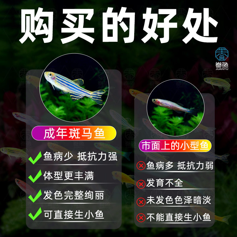 天猫热带观赏鱼斑马鱼七彩斑马好养耐活小型冷水淡水群游多彩灯科小鱼