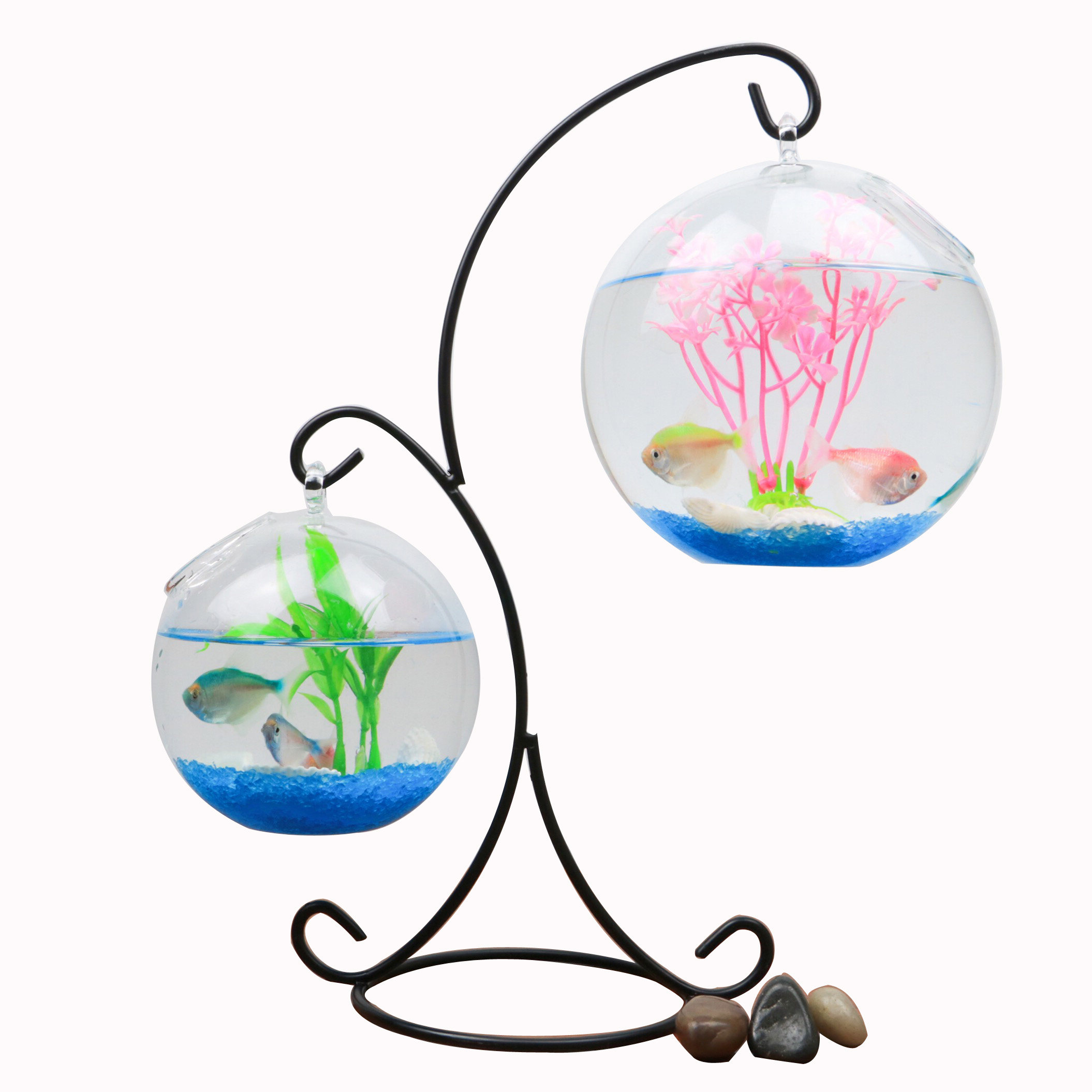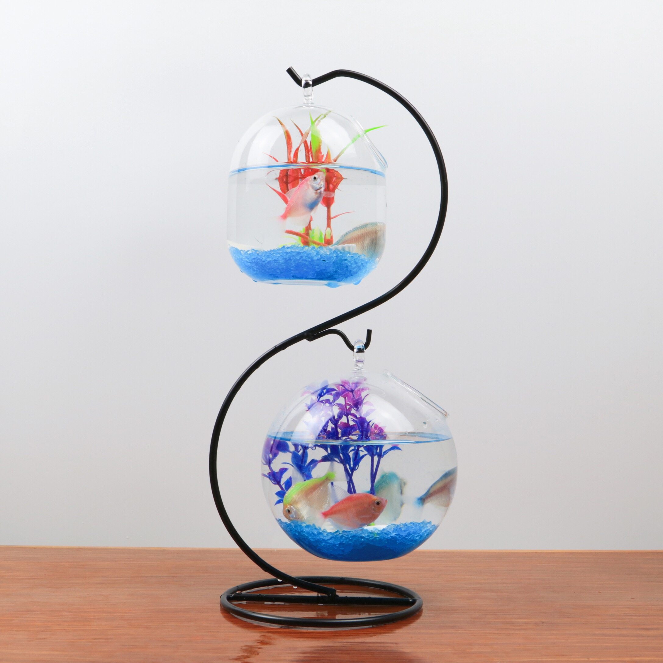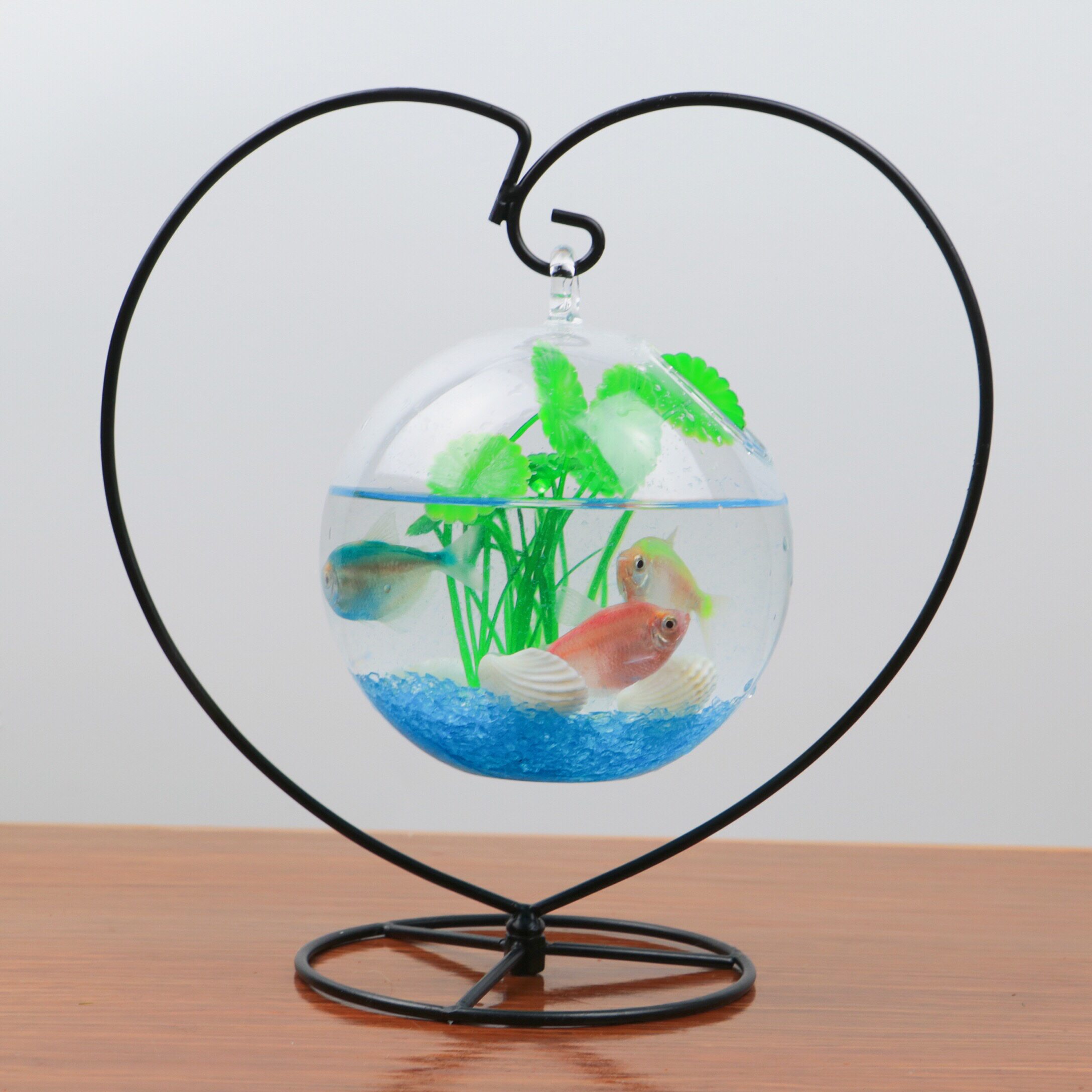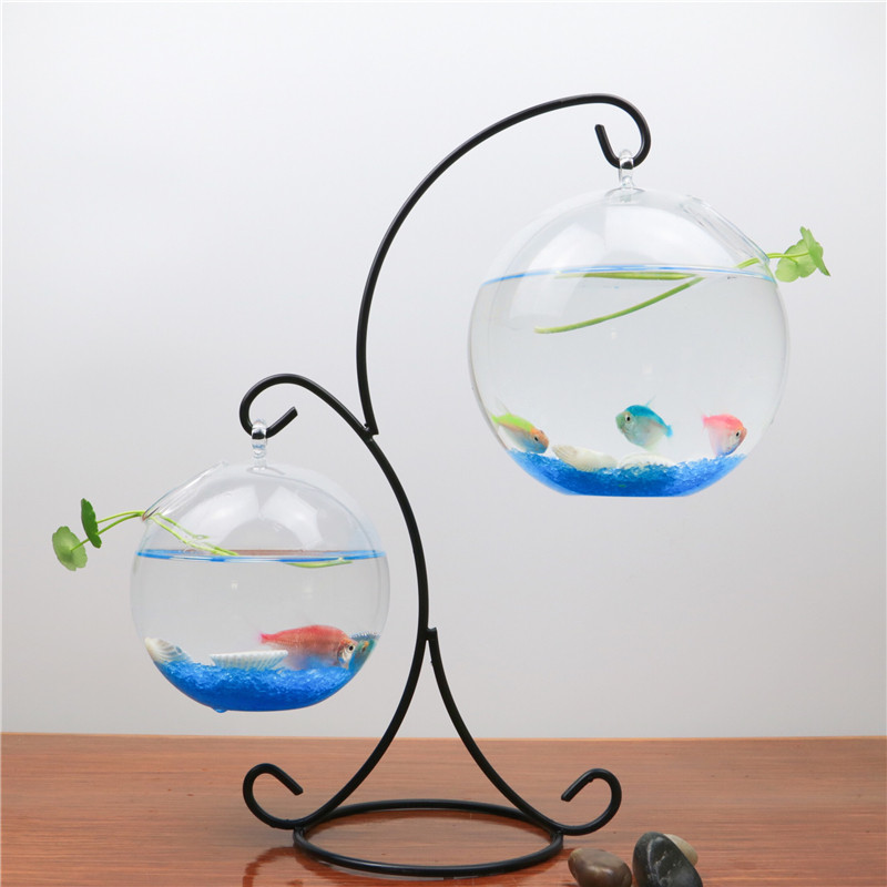 淘宝创意家居装饰悬挂办公桌面斗鱼缸摆件透明玻璃小型迷你圆形金鱼缸