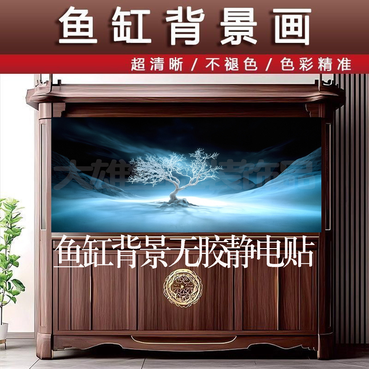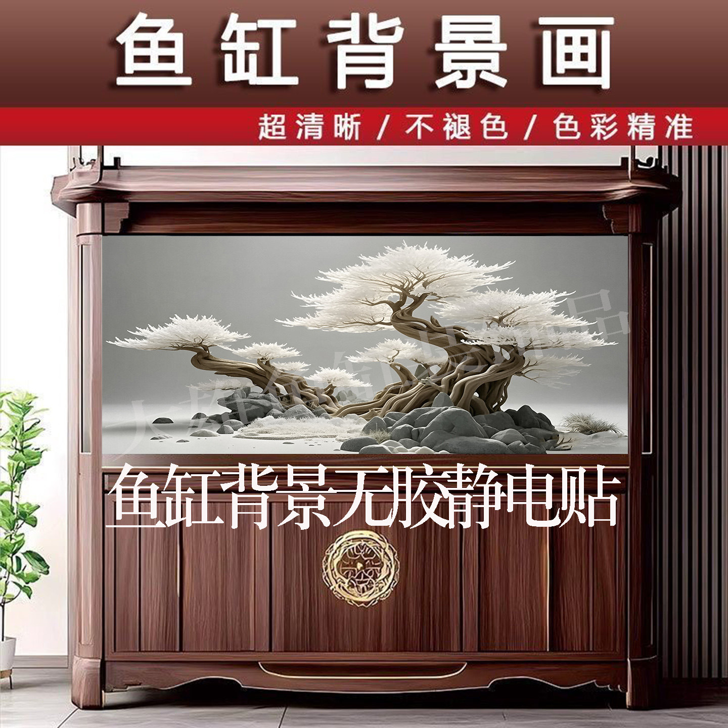 淘宝吉鱼鱼缸背景贴纸装饰贴纸5D造景水族箱贴纸自粘免胶静电贴