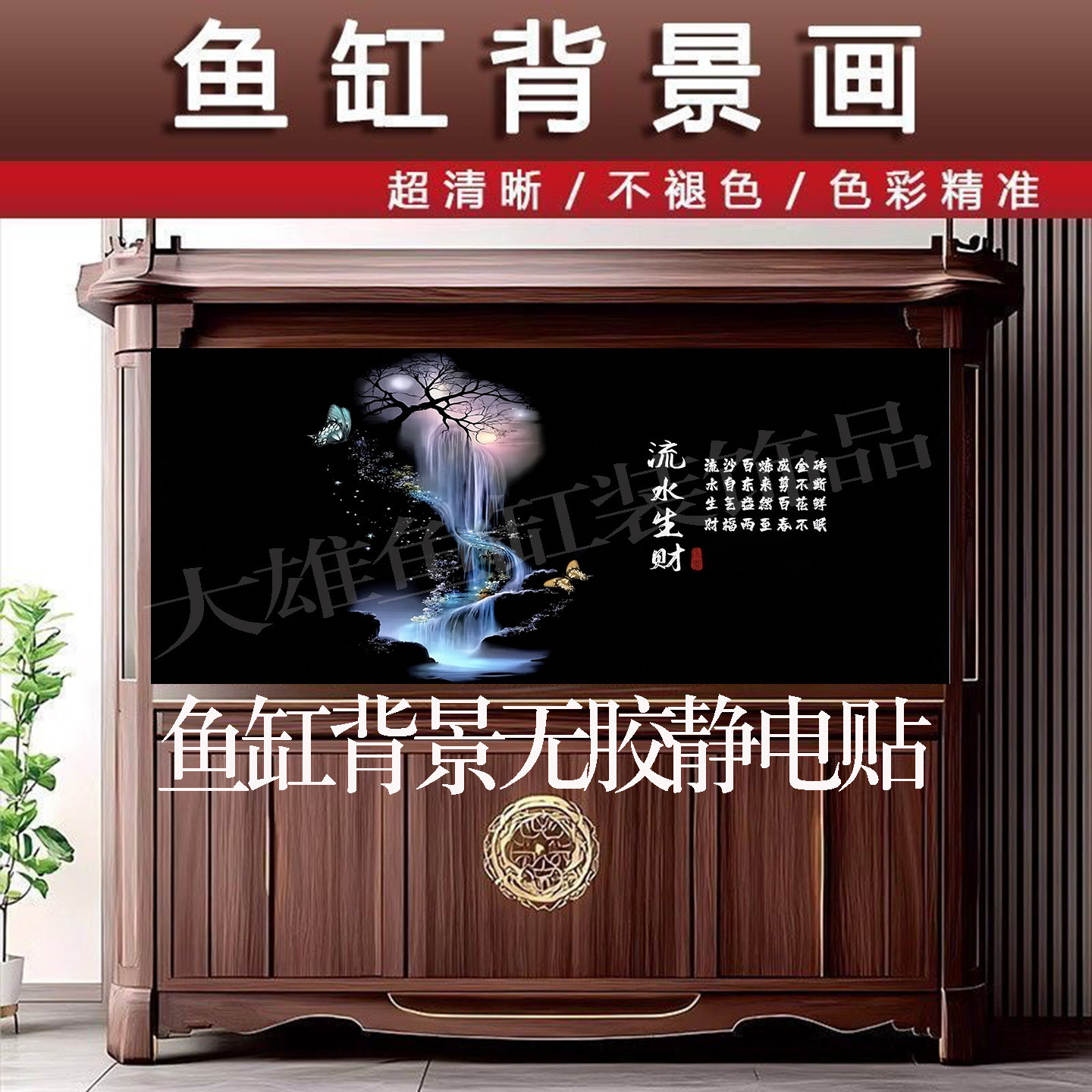 定制鱼缸背景贴纸黑色背景膜画高清图壁纸5d立体风生水起大圣荷花