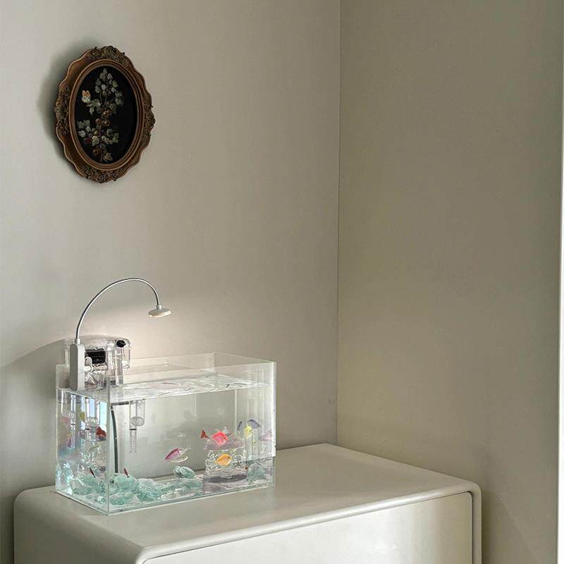 这款超白玻璃鱼缸专为新手和懒人设计,是理想的小型桌面观赏缸。采用高透光率的超白玻璃,清晰呈现鱼儿游动的每一刻,视觉通透,质感高级。缸体小巧精致,适合摆放在客厅电视柜旁、书桌、茶几等空间,兼具实用性与装饰性。配备静音水泵与简易过滤系统,有效保持水质清洁,减少换水频率,打理轻松。搭配LED照明灯,提升观赏效果,营造自然水景氛围。无需复杂设备,开箱即养,特别适合初学者或工作繁忙的上班族。无论是养金鱼、斗鱼还是小型热带鱼,都能营造一方灵动水景,为居家环境增添生机与美感,是现代家居的理想生态装饰。