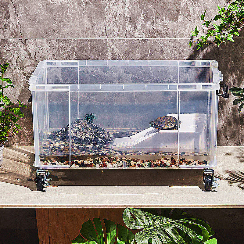 天猫乌龟箱鳄龟饲养箱巴西龟专用缸收纳箱造景透明有盖带排水生态鱼缸