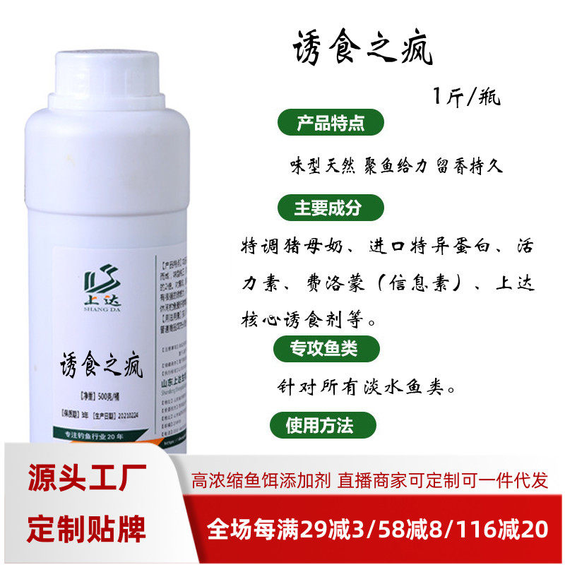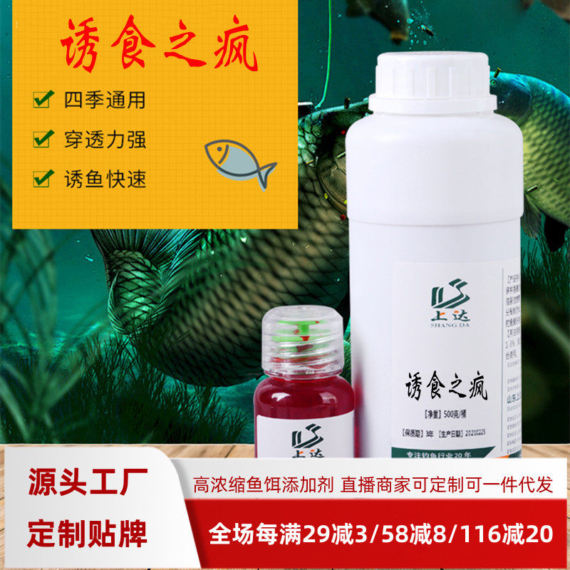淘宝上达诱食之疯水库垂钓添加剂黑坑野钓通杀钓鱼小药饵料复合诱食剂