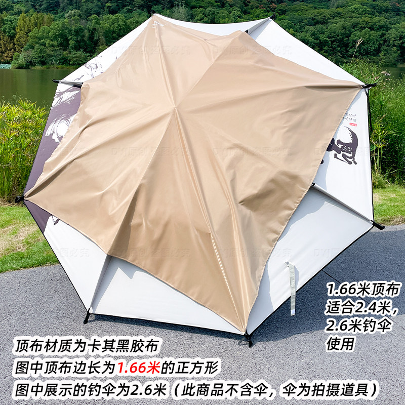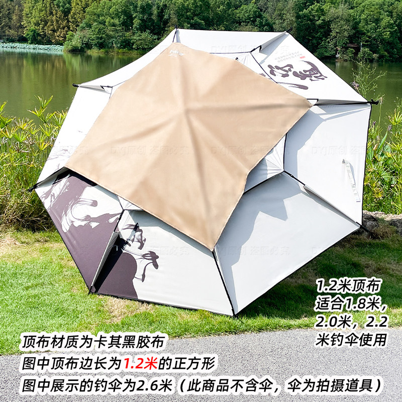 淘宝卡其色黑胶顶布侧边布帐篷防雨遮阳钓鱼伞顶盖防水天幕户外防雨罩