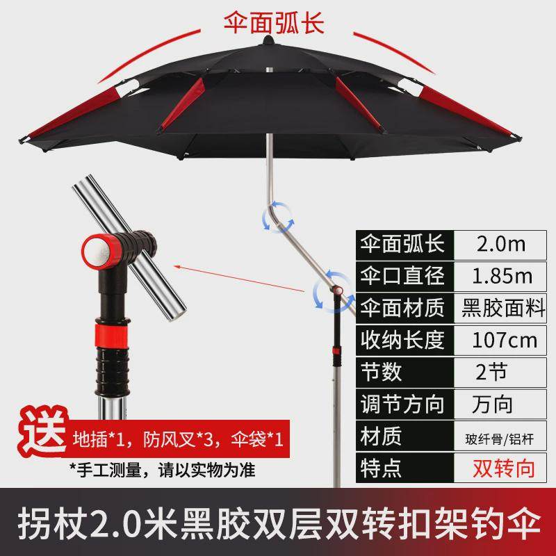 淘宝戴威营户外万向黑胶钓鱼伞2.4/2.2米双层防雨防晒大伞折叠太阳伞