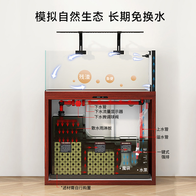 淘宝SUNSUN/森森溪流缸客厅大型超白玻璃生态造景极窄底滤鱼缸2025款