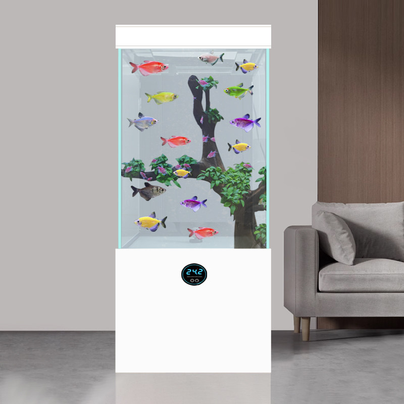 天猫新款金鱼缸底滤客厅电视柜旁大中型落地超白玻璃水立式方形水族箱