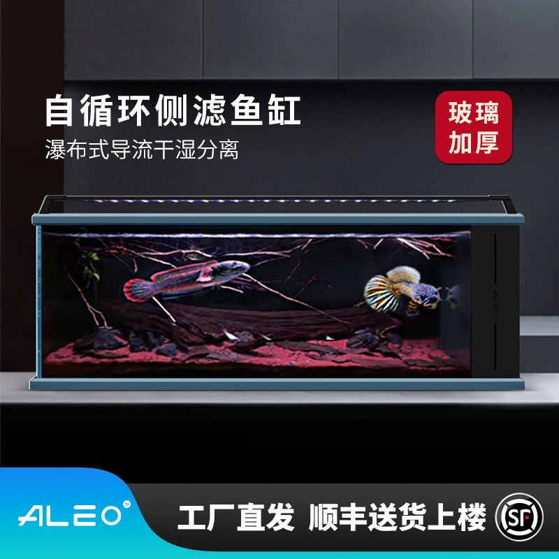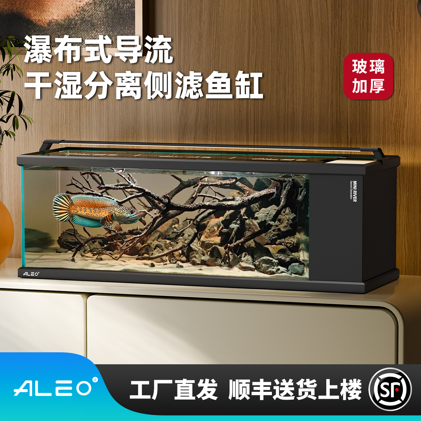 淘宝莱易欧侧滤金鱼缸一体式雷龙缸三湖慈鲷缸客厅桌面全套超白鱼缸