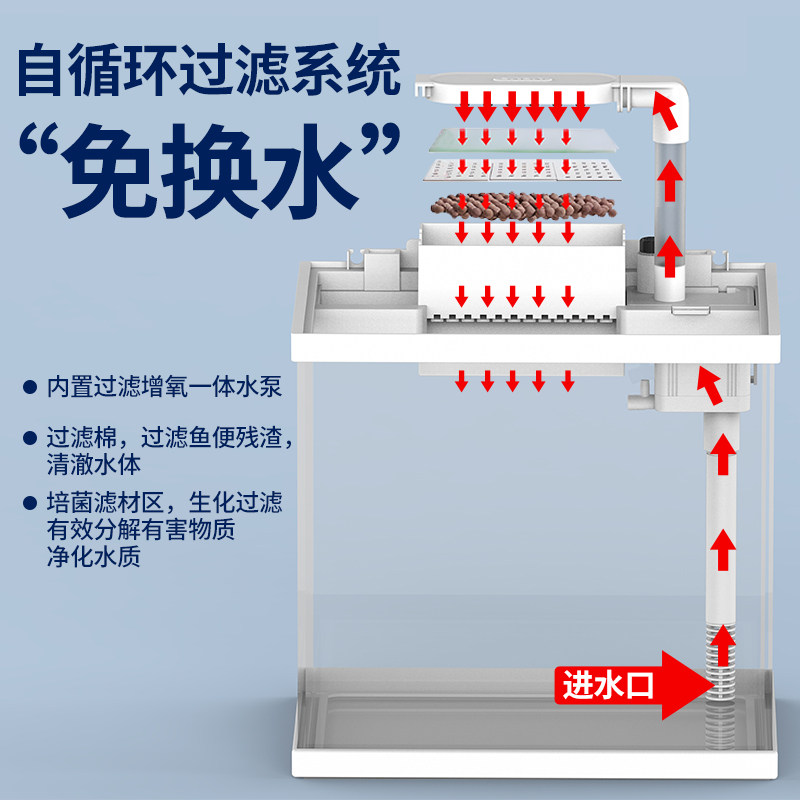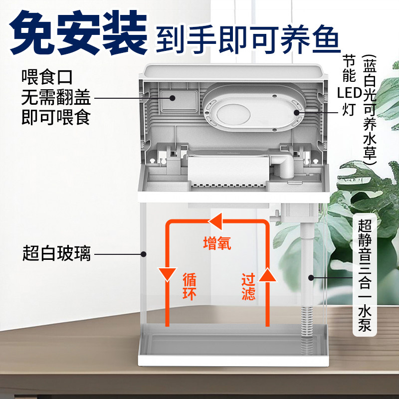 天猫超白鱼缸自循环客厅小型桌面家用免换水金鱼缸玻璃一体机过滤鱼缸