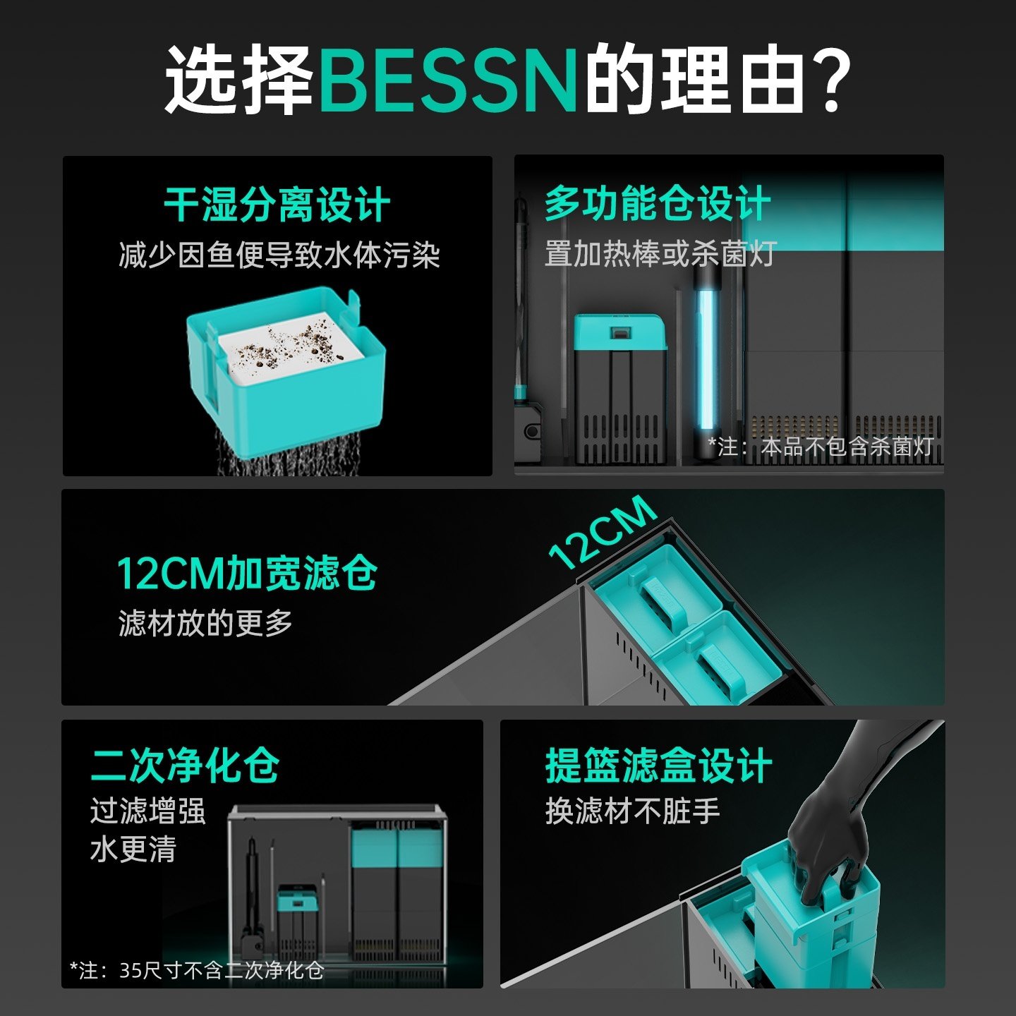 天猫BESSN2025新款背滤鱼缸客厅干湿分离多仓精滤贝森金晶五线超白缸