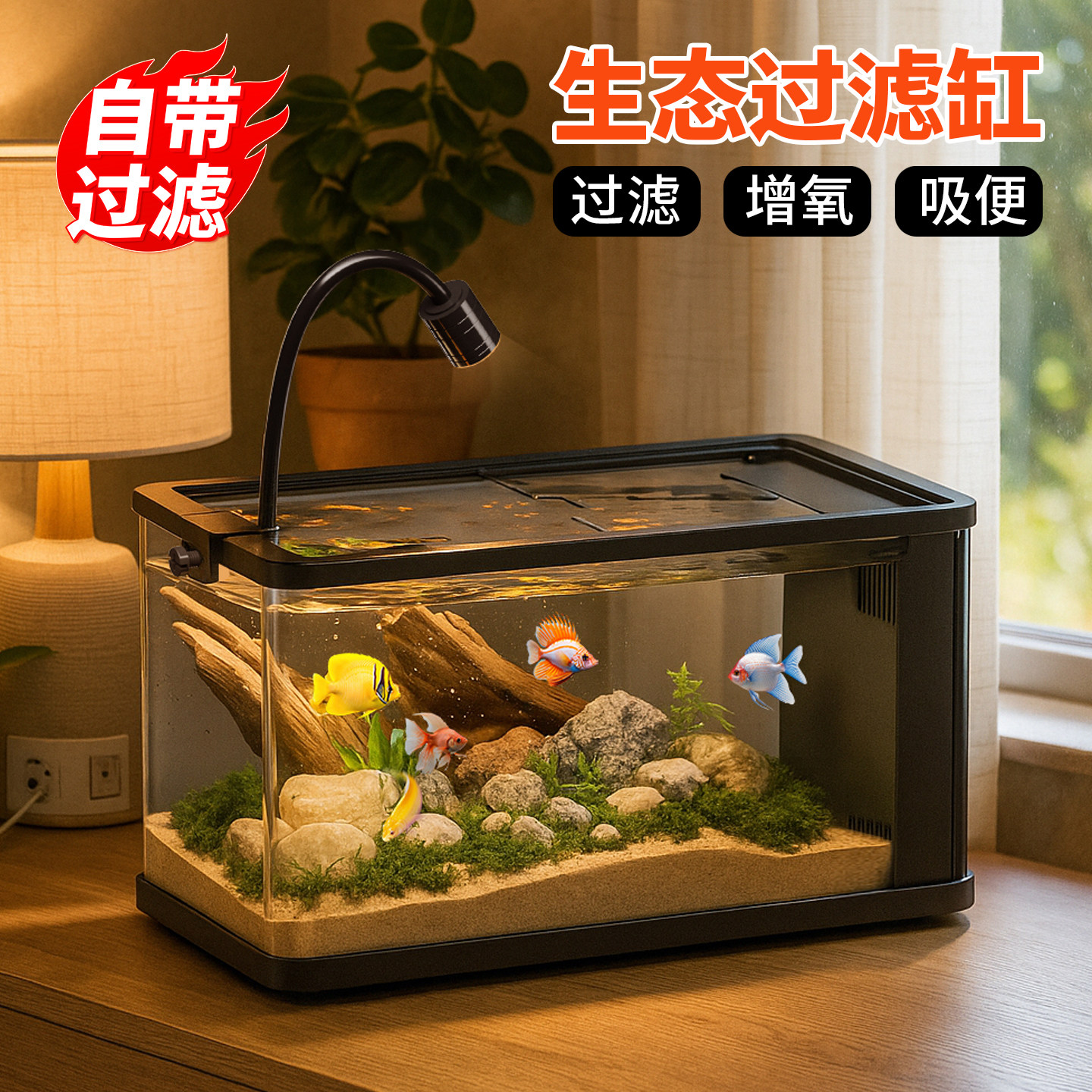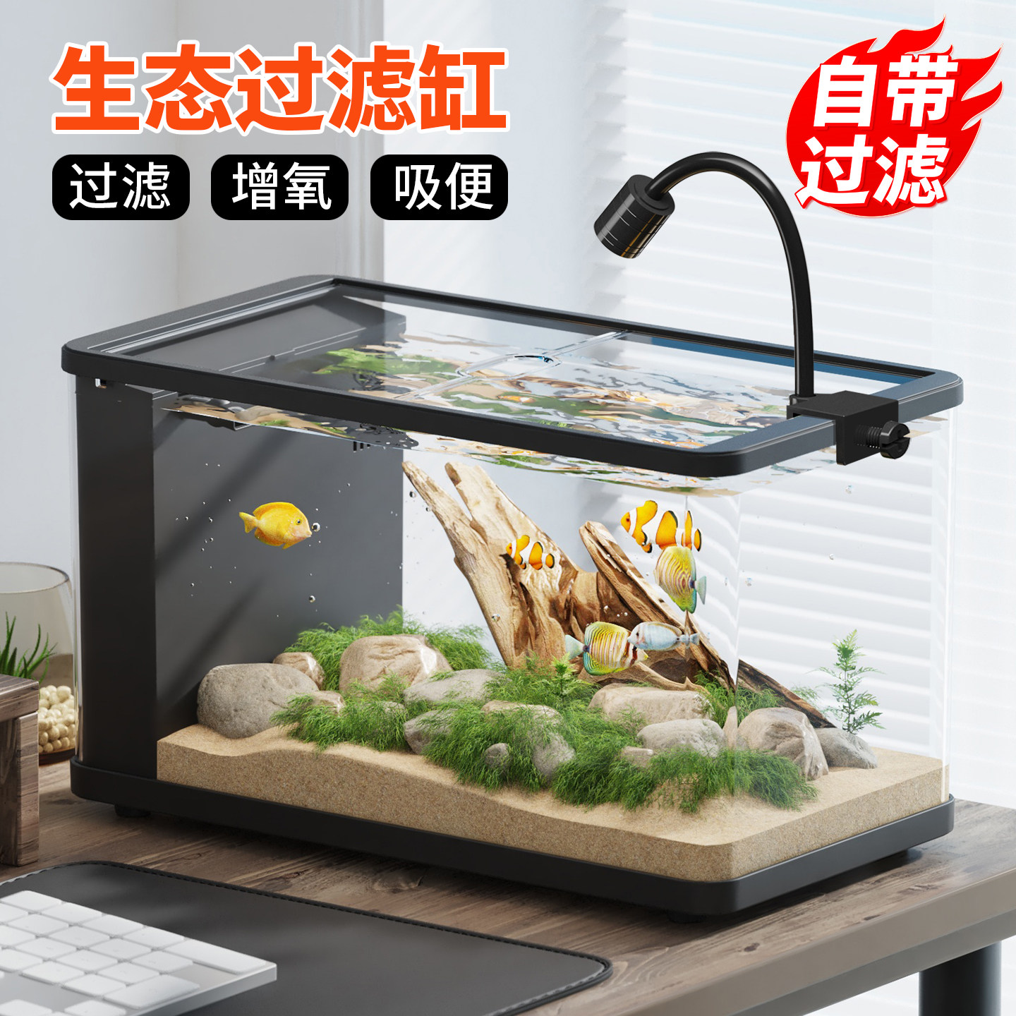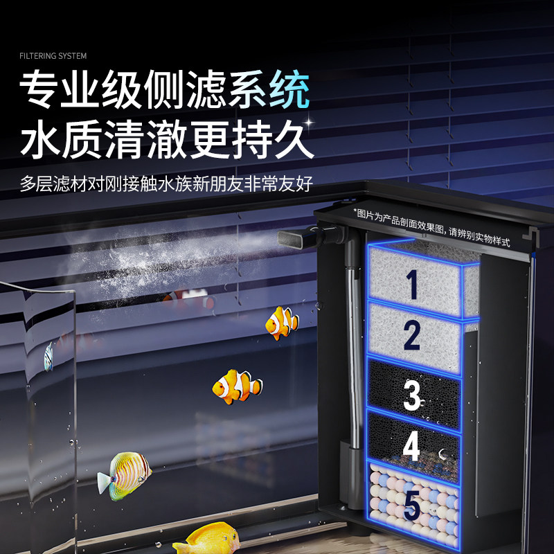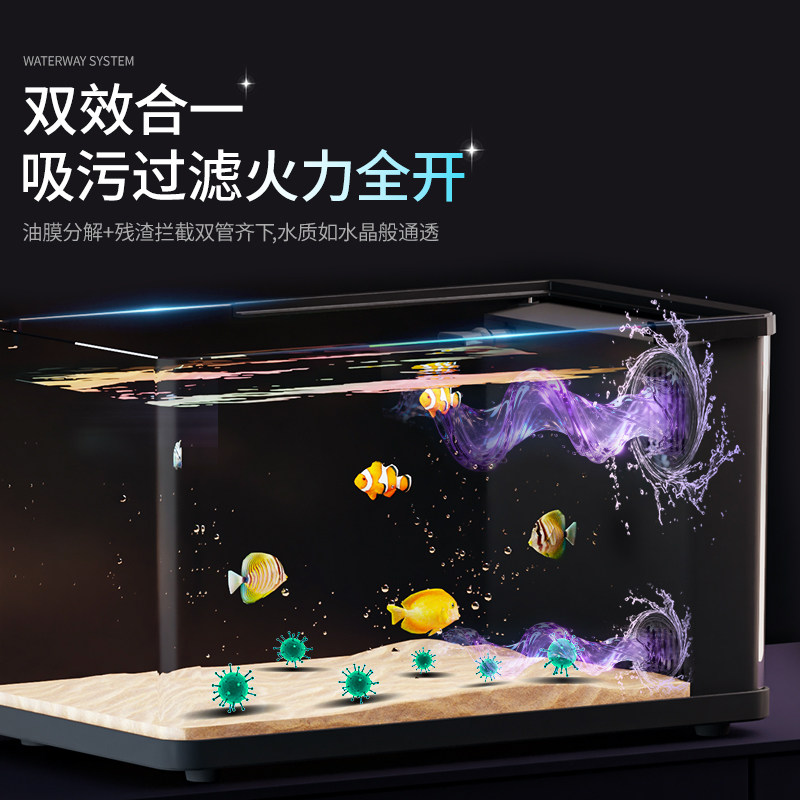 天猫小型鱼缸过滤制氧一体机客厅2025新款生态免打理侧滤桌面养金鱼缸
