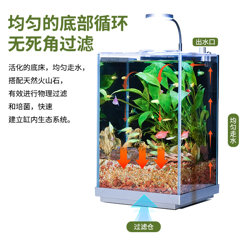 淘宝桌面底滤鱼缸全套造景缸自循环过滤生态水草缸办公室家用小鱼缸