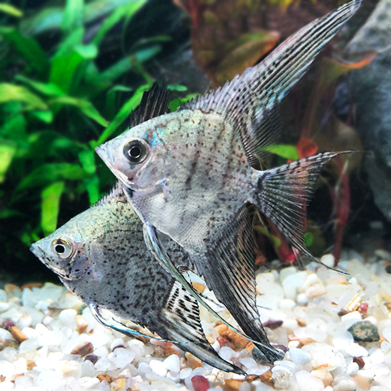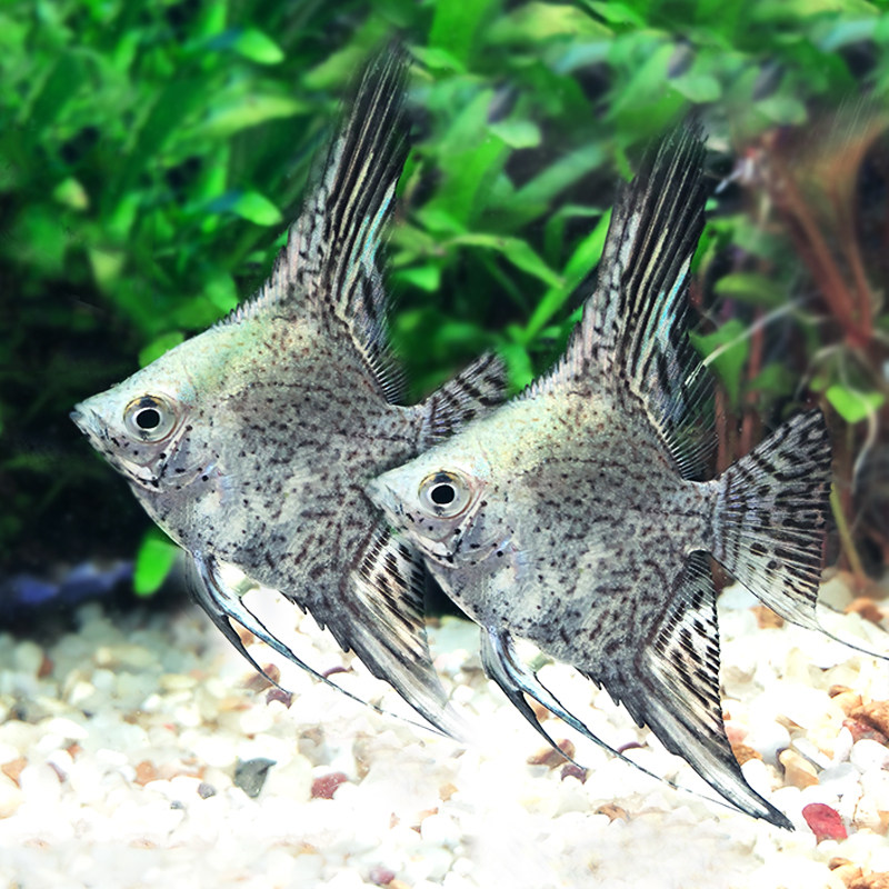 神仙鱼、燕鱼、蓝豹点仙、斑点仙、长尾红头七彩、金头钻石仙等均为热门热带观赏鱼。神仙鱼体态优雅,泳姿飘逸,具高帆背鳍;燕鱼身形侧扁如燕,游动轻盈;蓝豹点仙体表布满蓝色豹斑,野性十足;斑点仙则以黑白斑点相间,对比鲜明;长尾红头七彩拥有鲜艳体色与修长尾鳍,头部绯红夺目;金头钻石仙头部金黄,体侧闪耀钻石般亮片,极具观赏价值。这些鱼类多原产南美或非洲淡水流域,适宜弱酸软水环境,水温维持在26–28℃,适合造景水族箱饲养,是水族爱好者追求色彩与形态之美的理想选择。