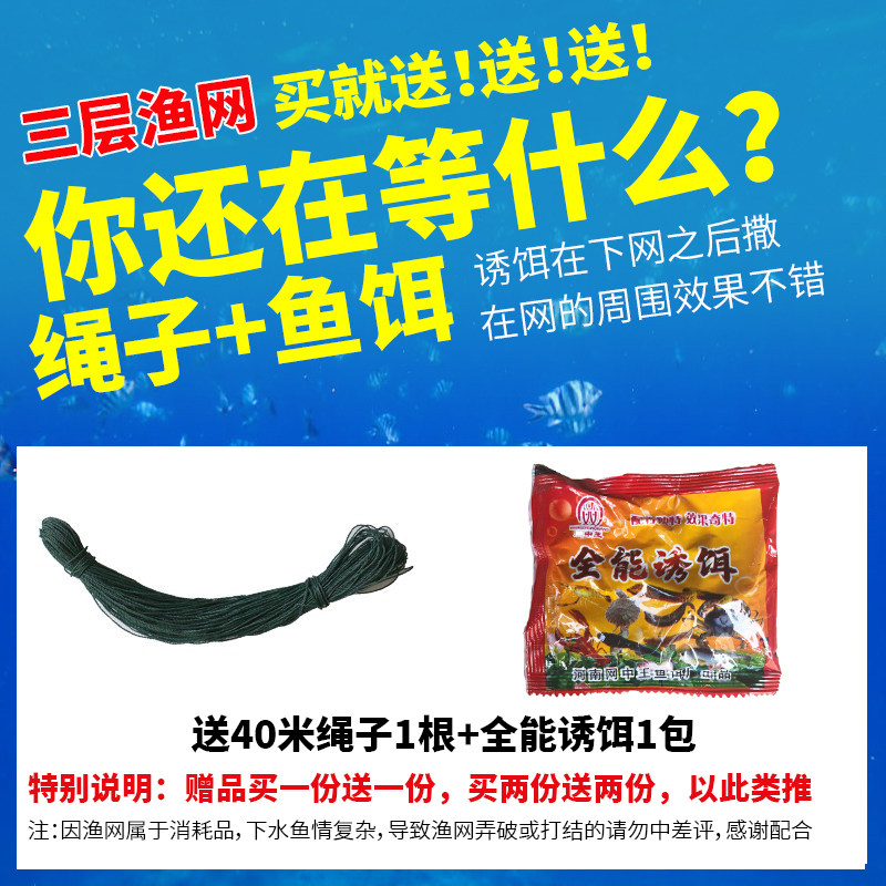 鱼网粘网加密三层渔网绳包坠加重捕鱼网不缠网丝网鲫鱼鲤鱼挂网
