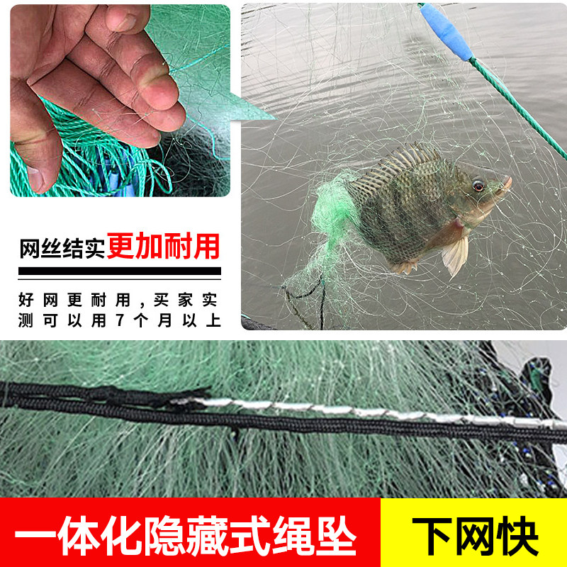 淘鱼网粘网加密三层渔网绳包坠加重捕鱼网不缠网丝网鲫鱼鲤鱼挂网