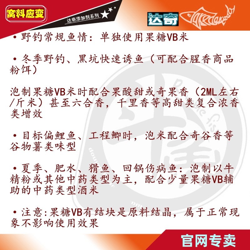 淘宝达奇钓鱼小药添加剂果糖vb鲫鲤鱼饵料果酸甜泡酒米窝料野钓牛精粉