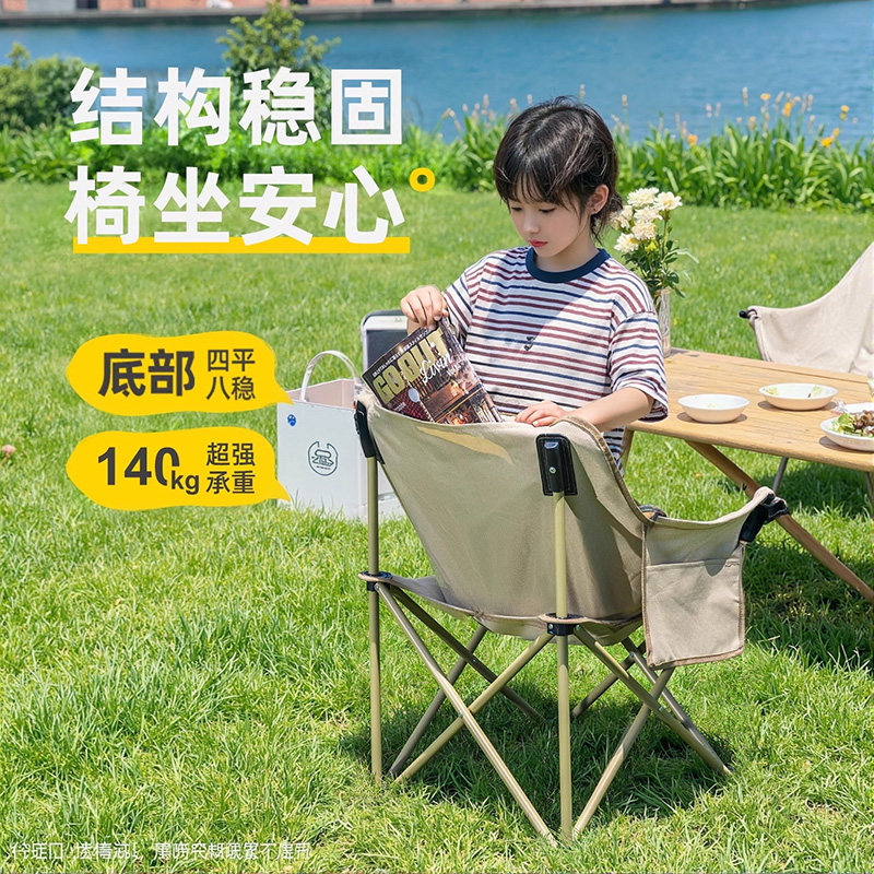 户外月亮椅是一款集舒适与便携于一体的户外休闲座椅,采用人体工学弧形靠背设计,贴合脊椎曲线,久坐不累。轻巧铝合金支架搭配高强度牛津布,承重强、透气耐用,可快速折叠收纳,轻松放入背包或后备箱。适用于露营、钓鱼、沙滩、野餐、庭院等多种场景,既是舒适躺椅,也可作为临时野餐桌椅使用。部分款式配备杯托、侧袋等贴心细节,提升户外体验。无论是独自放松还是家庭出游,月亮椅都能为您提供安稳惬意的休憩空间,是户外爱好者的理想之选。