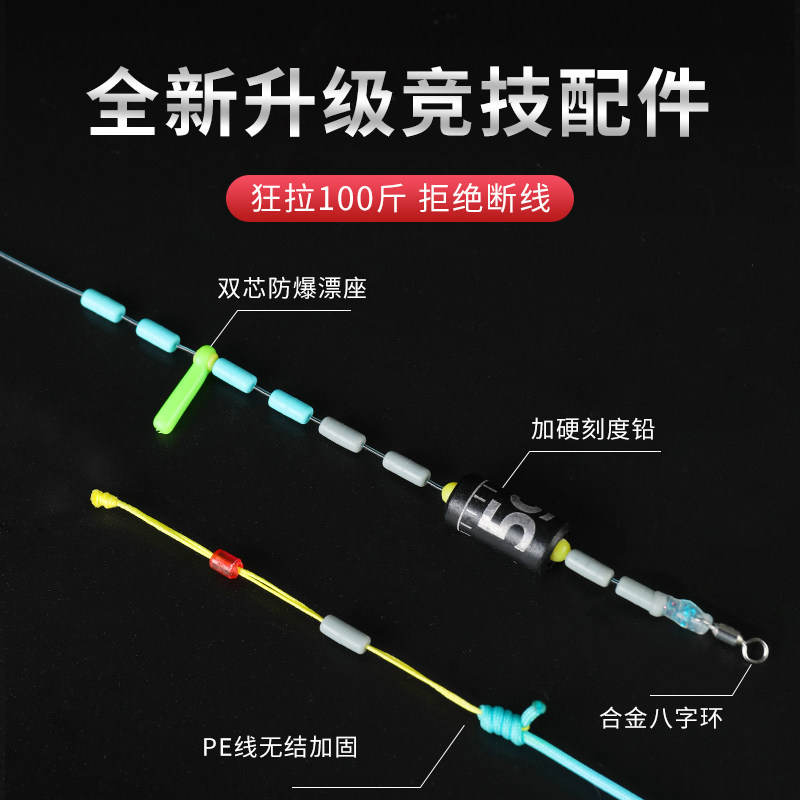 本款进口原丝成品线组套装,采用高品质进口原丝材料,专为台钓鲢鳙设计,主线柔软顺滑,拉力强、耐磨损,有效减少切水阻力,提升抛投精准度。线组已提前绑制完成,包含主线、太空豆、漂座、铅皮座等全套配件,即装即用,省时省力。线体透明度高,隐蔽性强,不易惊鱼,适合多种水域环境。经过严格质检,确保正品品质,抗拉性能稳定可靠。无论是新手还是资深钓友,都能轻松应对鲢鳙等大型鱼种的挑战。套装设计科学合理,细节做工精良,是提升垂钓体验的理想选择。