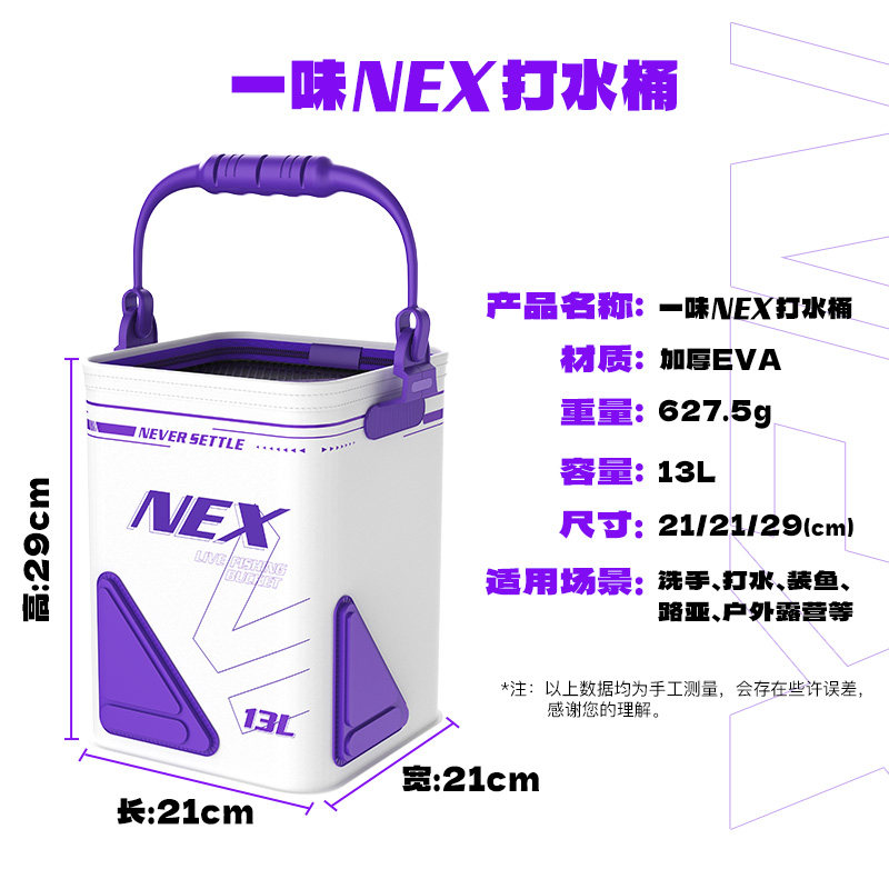 天猫化氏一味NEX打水桶新品加高加厚可折叠手提路亚带盖装鱼桶