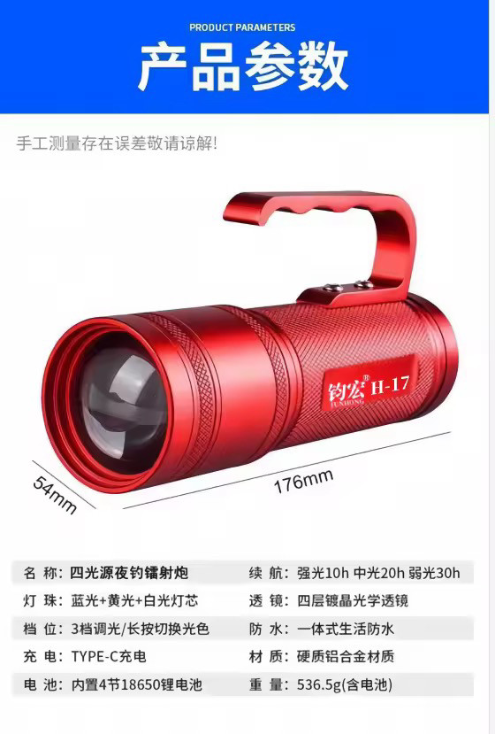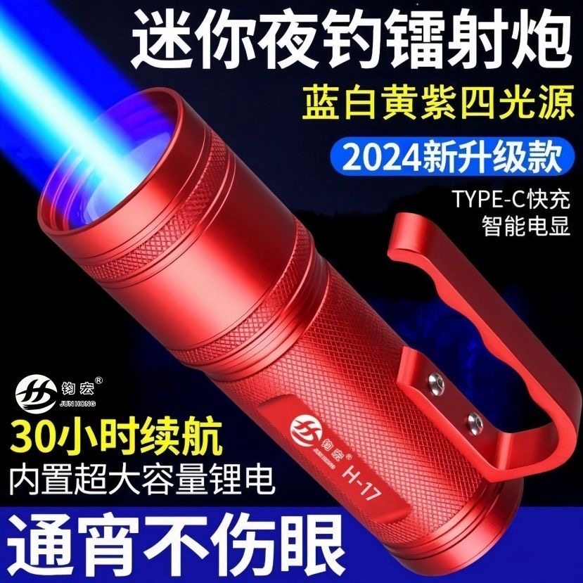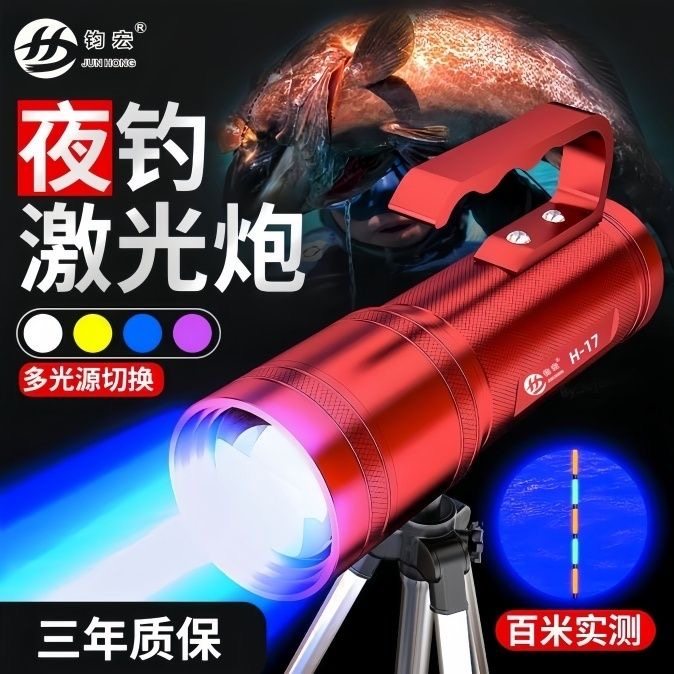 淘宝钧宏H17超亮夜光灯大功率夜钓灯激光镭射炮钓鱼灯诱鱼疝气