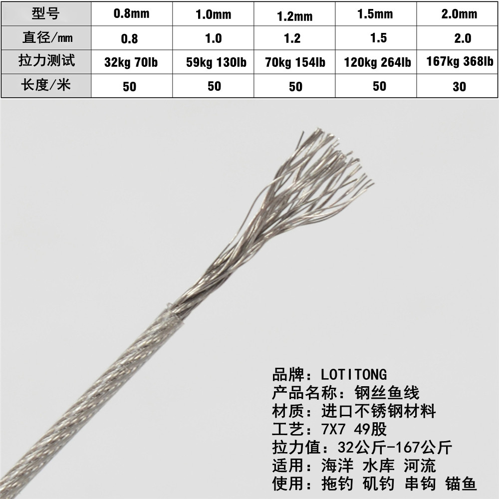 这款50米进口海钓钢丝线鱼线,专为深海垂钓和防咬需求设计,采用高强度进口合金钢丝材质,具备卓越的耐磨性与抗咬性能,有效应对鲨鱼、石斑等凶猛鱼类的利齿攻击。线体柔软顺滑,结节牢固,不易缠绕,提升抛投顺畅度与灵敏度。适用于串钩、铁板钓、拖钓等多种海钓场景,作为主线连接前导线或钓组,保障作钓安全。50米长度满足远投与深海作钓需求,性价比高。现全国包邮,品质保障,是海钓爱好者值得信赖的专业装备,助您在波涛中轻松擒获巨物。