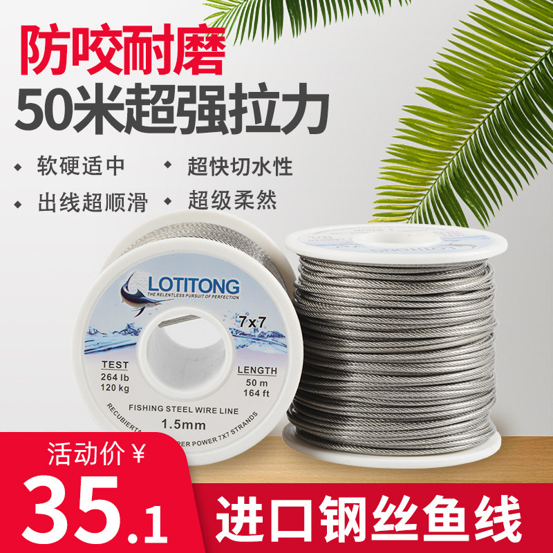 淘宝50米进口海钓钢丝线鱼线防咬耐磨柔软鱼丝线 串钩主线钓鱼线包邮