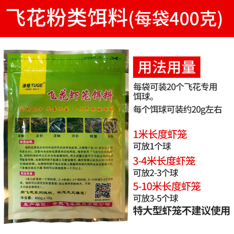 飞花饵料是专为捕捉小龙虾、河虾、黄鳝、泥鳅、螃蟹等水产动物设计的专用诱饵,适用于虾笼、网笼、捕鱼笼等捕捞工具。其采用天然诱食成分科学配比,气味浓郁持久,能快速吸引目标水产聚集入笼,显著提高捕获效率。饵料耐水性强,投放后不易散失,可在水中持续释放诱食信号,适用于河流、池塘、稻田等多种水域环境。使用简便,无需复杂操作,是渔民、垂钓爱好者及水产养殖户的理想选择。飞花饵料安全环保,对水体无污染,助力高效、可持续捕捞。