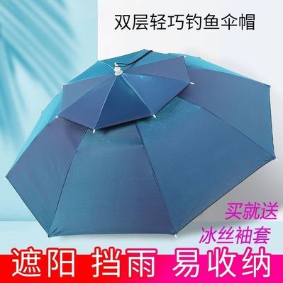 钓鱼伞单双层帽头戴伞折叠头戴式防晒遮雨雨伞头顶伞溪流钓装备伞