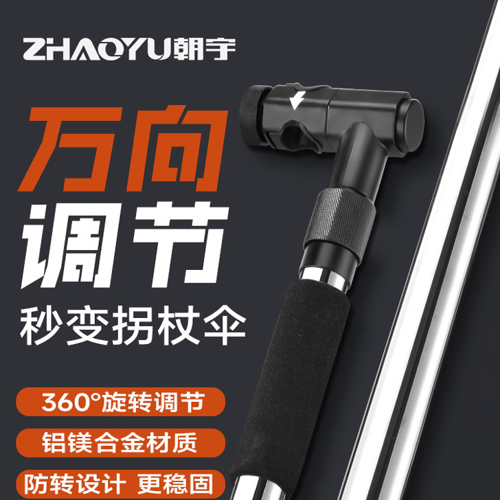 钓鱼伞下杆拐杖头万向杆手杖杆铝合金万向钓伞拐杖地插加强不锈钢