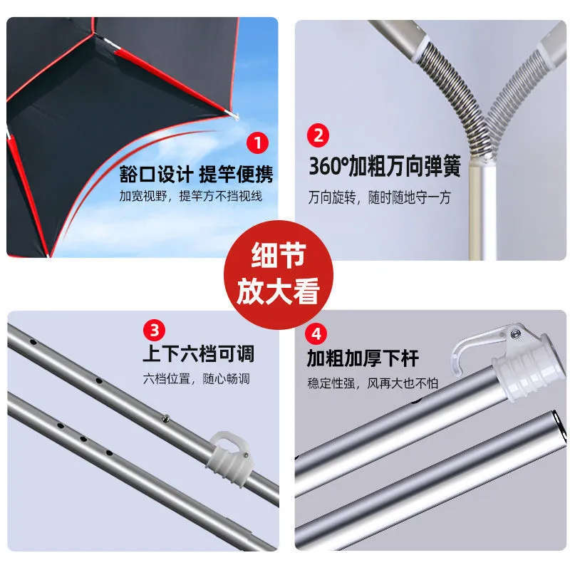 钓之言钓鱼伞万向大钓伞2023新款,专为户外垂钓爱好者设计,采用双层加厚防雨面料,有效抵御风雨与紫外线,防晒指数高达UPF50+,持久耐用。伞面宽大,遮阳防雨面积充足,搭配360°万向调节支架,可自由调整角度,适应不同风向与日照方向。铝合金骨架轻便坚固,抗风性能优异,折叠后小巧便携。底座支持地插、夹持等多种固定方式,稳固可靠。无论是湖边、河边还是海钓,都能提供舒适庇护,是户外垂钓的理想伴侣。2023年升级款更添细节优化,实用性与颜值兼具。