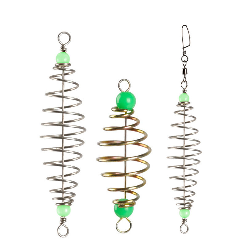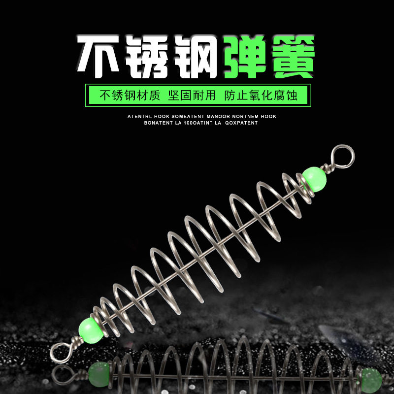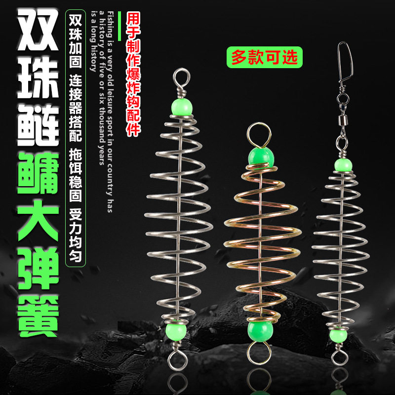 淘宝不锈钢手竿爆炸钩鲢鳙钓组大弹簧钓鱼托饵器双钩小配件带双珠饵笼