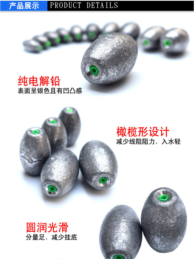 淘宝钓鱼用塑通心铅坠中通橄榄不伤线海钓矶钓海竿渔具串钩爆炸钩铅坠