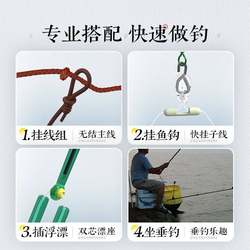免调漂立漂线组是一款专为台钓设计的便捷高效渔具套装,采用高品质主线搭配双钩结构,配备翻转式鱼钩,有效防止挂底并提升中鱼率。线组集成高精度浮漂,无需繁琐调漂,入水即自动平衡,极大简化作钓流程,适合新手及追求效率的钓友。主线韧性强、耐磨损,结节拉力高,搭配灵敏立漂,可精准捕捉鱼讯。整套线组即装即用,省去传统调漂时间,广泛应用于鲫鱼、鲤鱼等淡水鱼种垂钓。是休闲野钓、塘钓的理想选择,让垂钓更轻松、更高效。