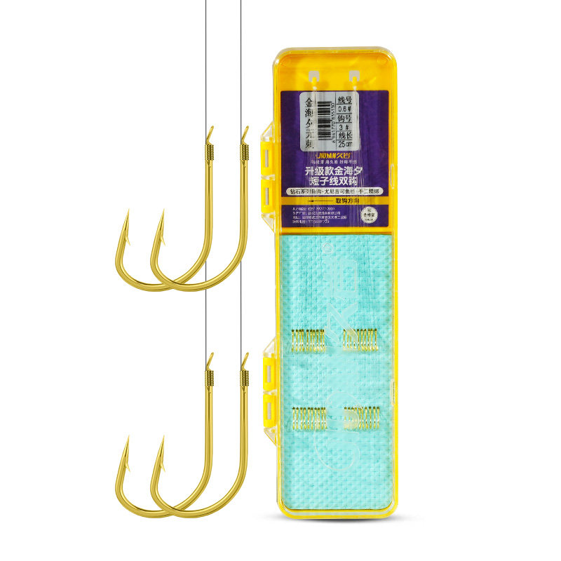 鱼钩绑好子线双钩成品套装伊势尼金袖有刺钓鱼钩金海夕野钓鲫鱼钩