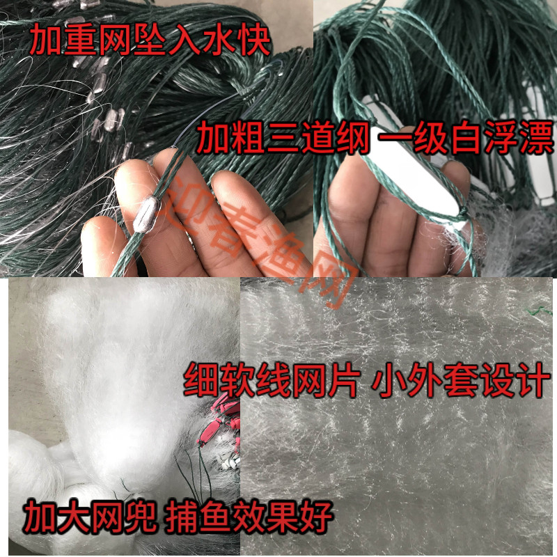 淘鱼网粘网加密三层渔网绳包坠加重捕鱼网不缠网丝网鲫鱼鲤鱼挂网