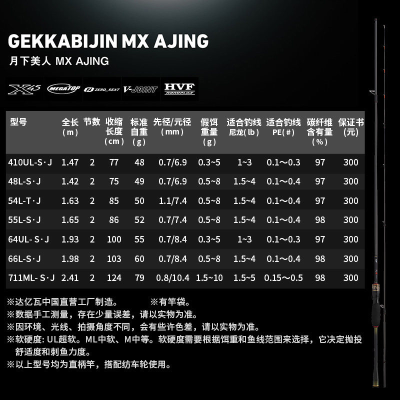 天猫DAIWA达亿瓦 25新款 月下美人MX J小根钓竿海岸路亚钓鱼杆微物