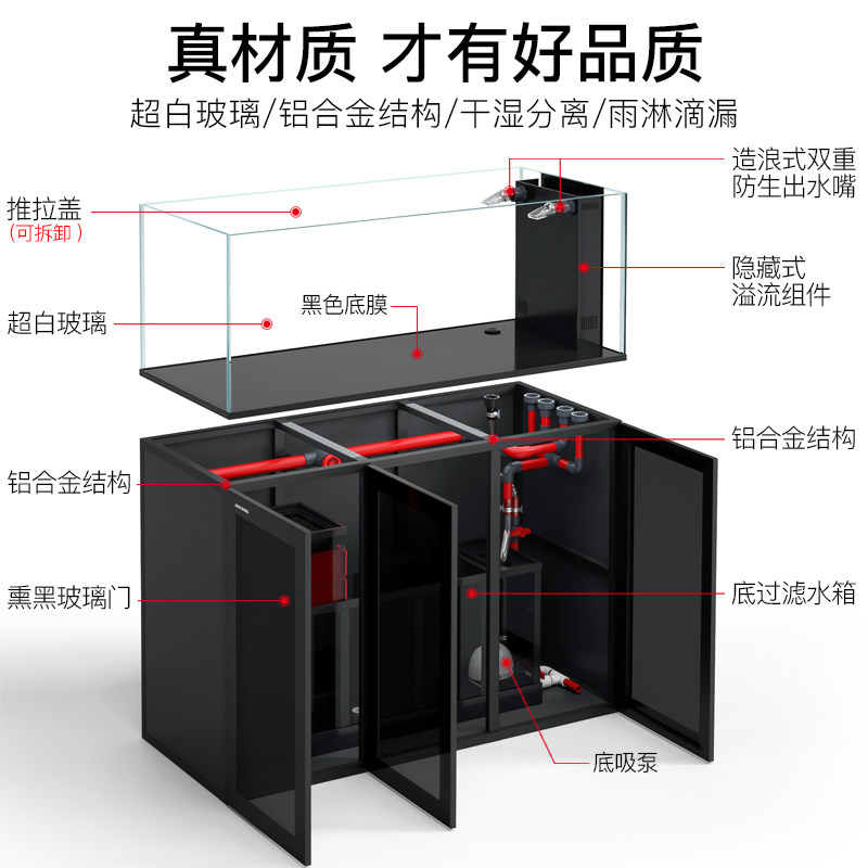 天猫闽江溪流缸客厅家用大型原生造景南美缸简约现代背包底滤生态鱼缸