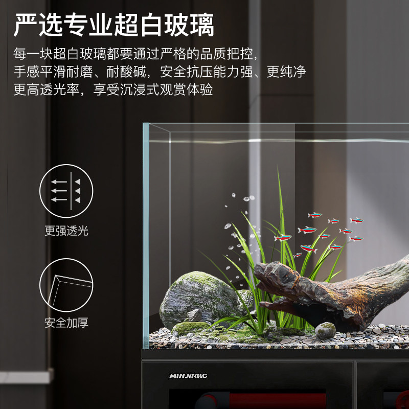 天BESSN超白缸金晶五线超白玻璃鱼缸家用客厅中大型溪流缸生态龟缸