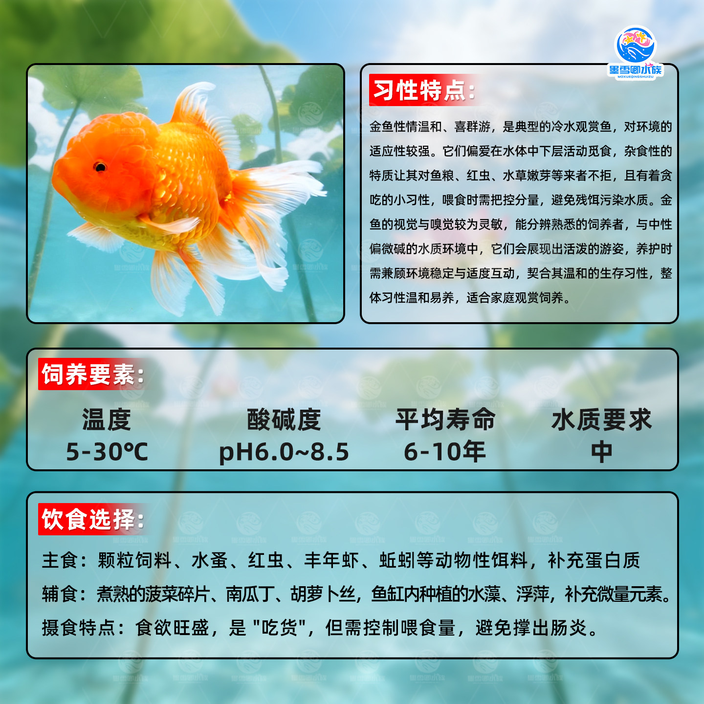 金鱼“鸿运当头”“鹤顶红”“国狮”均为优质冷水淡水观赏鱼,适应性强,耐寒耐活,非常适合新手饲养。鸿运当头通体银白,头顶鲜红,寓意吉祥;鹤顶红以头瘤红艳如丹顶而得名,体态优雅;国狮则头瘤丰满,身形短圆,游姿稳健。这些品种对水质要求不高,可在常温下生存,无需加热棒,食性杂,易打理。作为活体鱼苗,健康活泼,成长过程中色彩逐渐显现,观赏价值高。无论是家庭鱼缸还是庭院鱼池,都能为环境增添生机与好运,是兼具寓意与美感的理想观赏鱼选择。