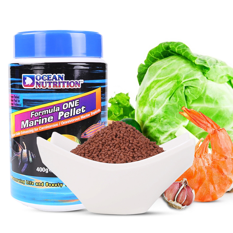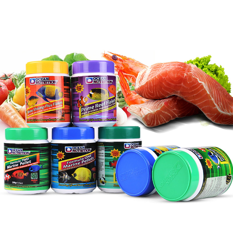 淘宝美国海洋牌开口鱼食海水鱼饲料素食加蒜小颗鱼粮荤食鱼粮颗粒薄片