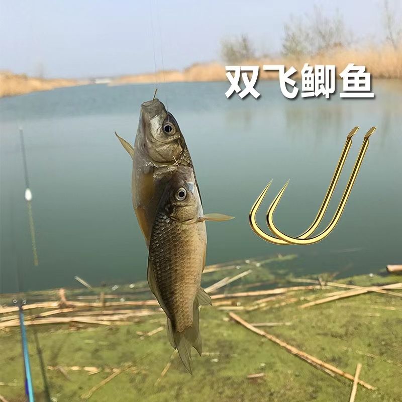 鱼钩绑好子线双钩成品套装伊势尼金袖有刺钓鱼钩金海夕野钓鲫鱼钩